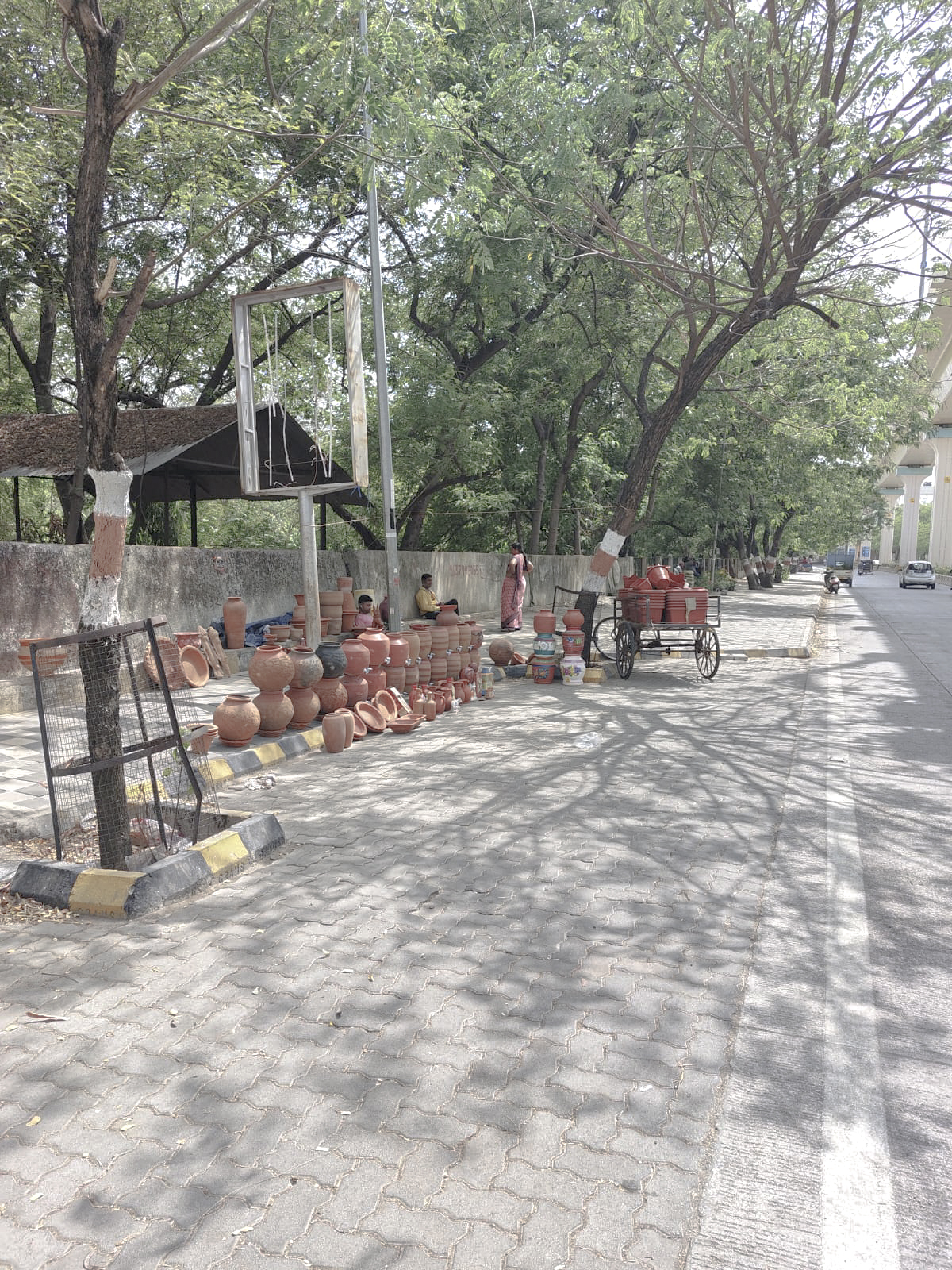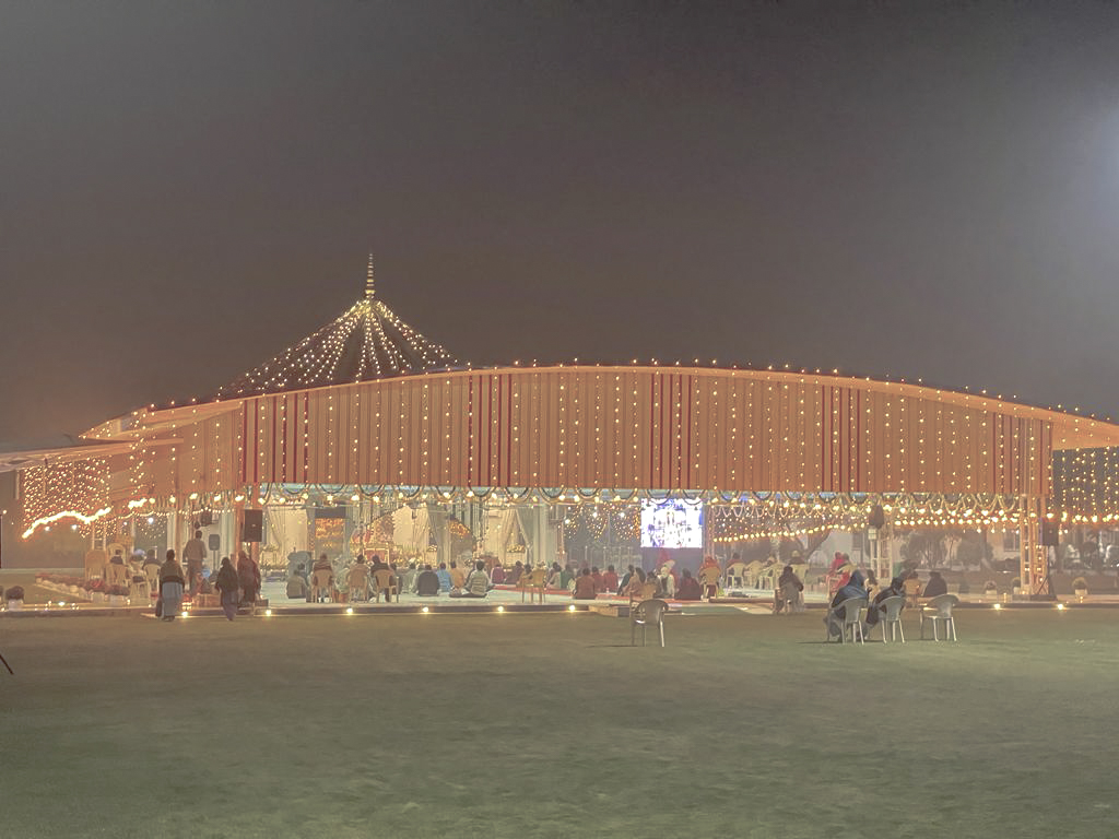 Like the title says it is more a pictural representation of a growing form which represents the community, each petal representing a human individual. The flower grows and grows and is placed over a powerfull green, which represents a powerfull beginning and a powerfull strong society. Like the image of a green farm giving food and wealth to the surrounding villages even though under the scorching sun & the drought, victory prevails with hard work and faith.