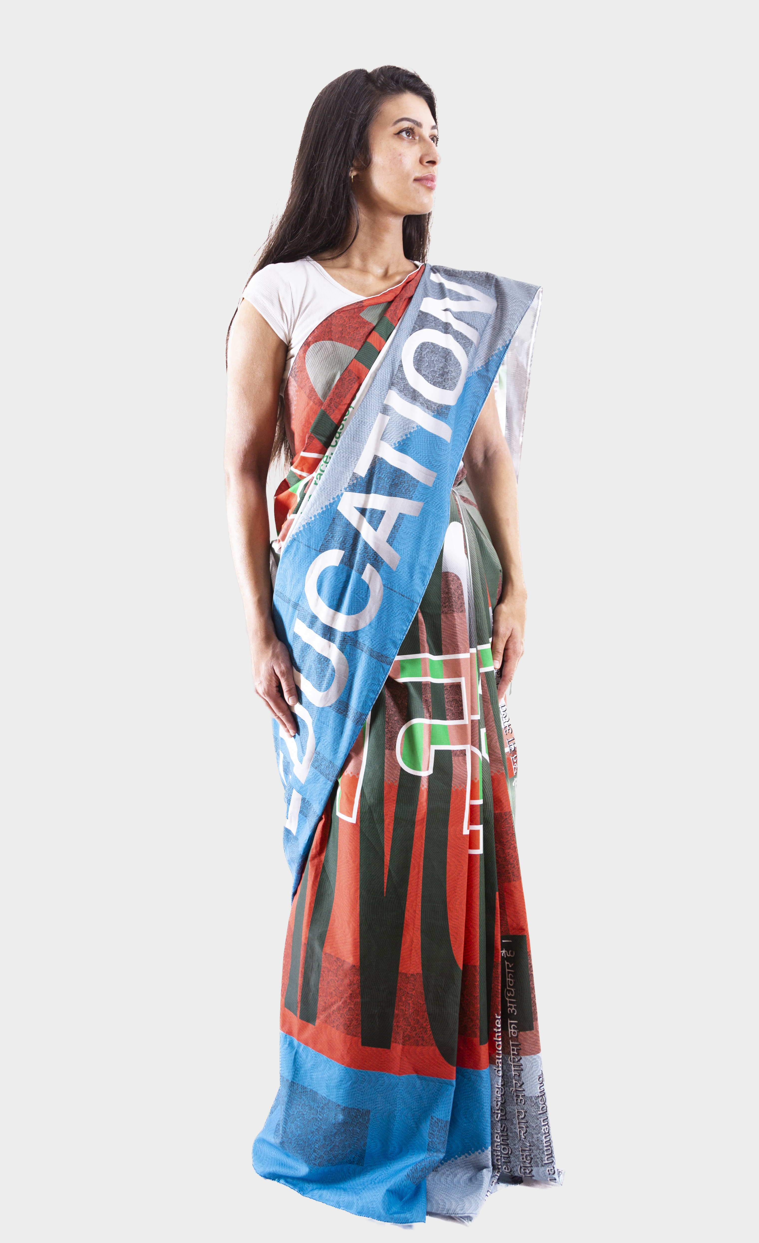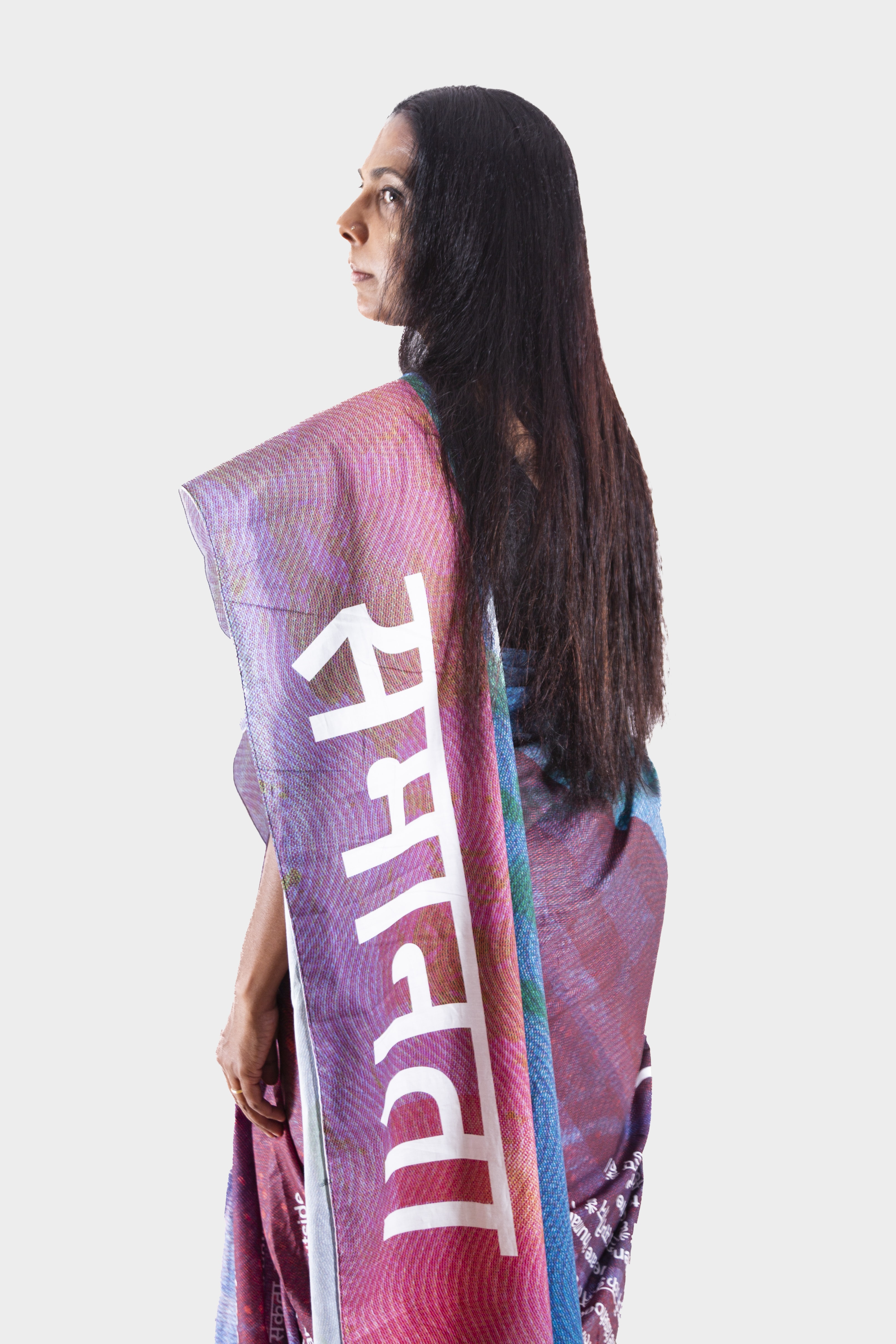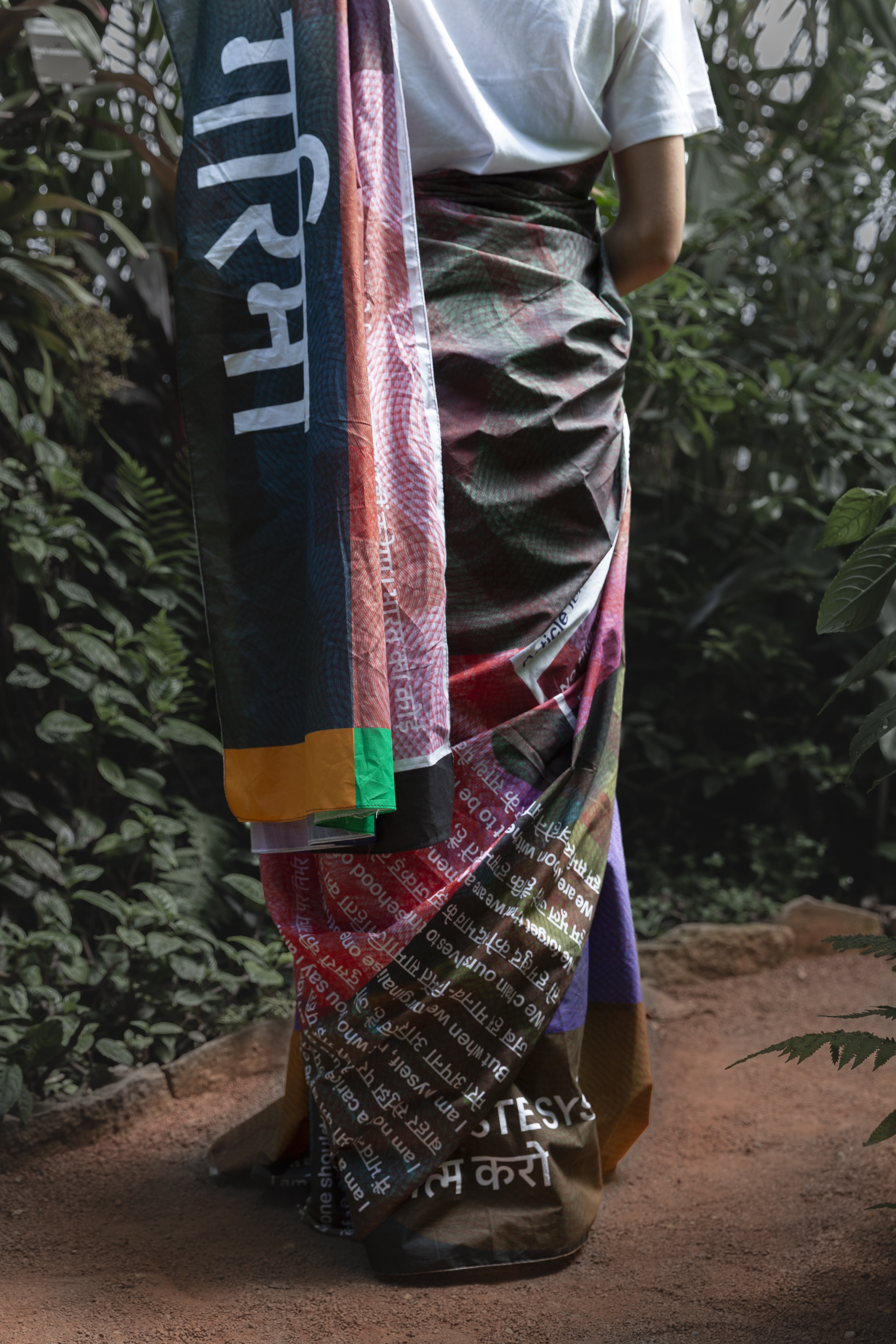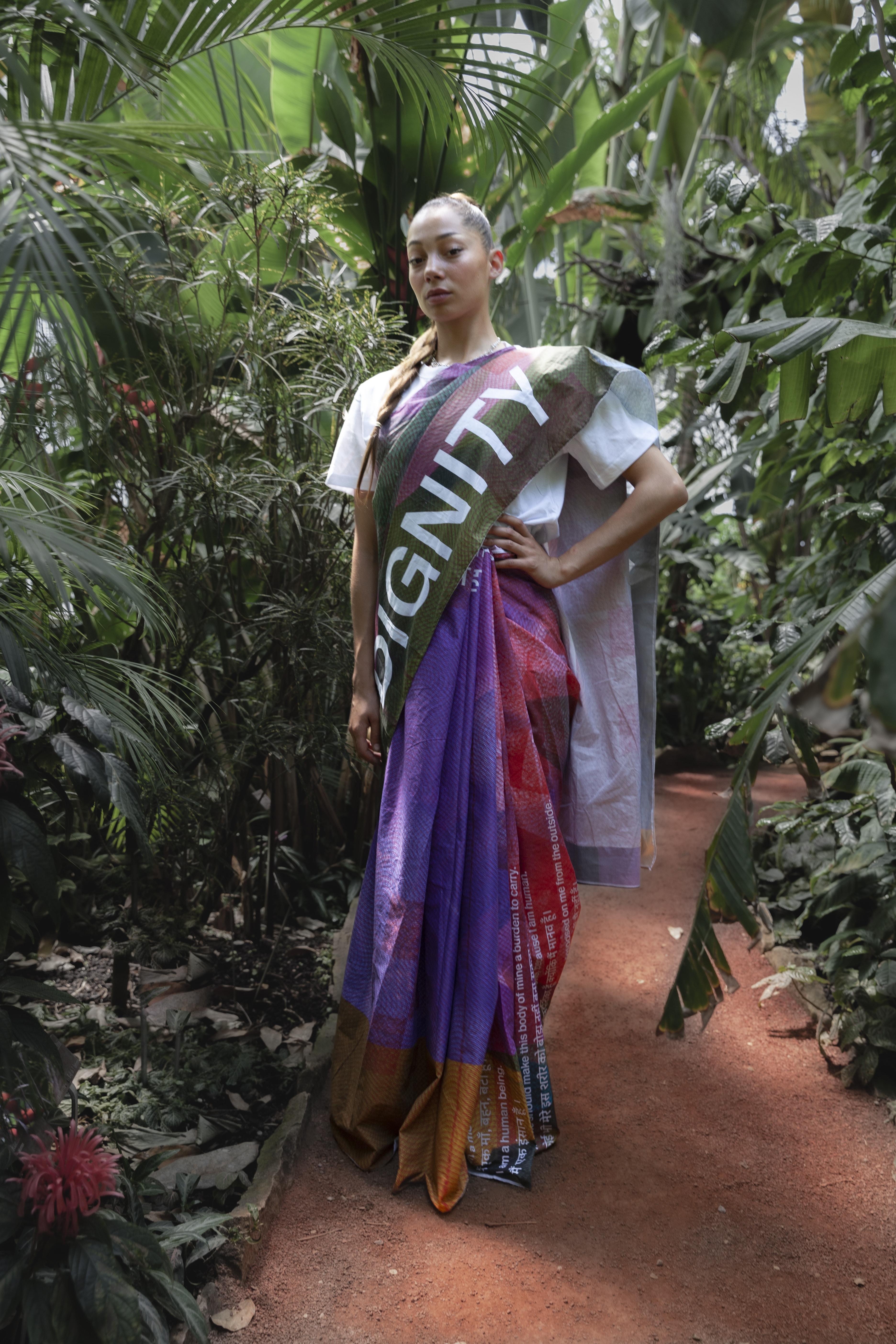 Although the caste system affects both men and women, as a designer I had to make a choice as to which of these to represent. Choosing the sari is my way of bringing the message to the people, and considering India is a male-dominated society in which gender bias is very present, empowering victims or survivors of the caste system and empowering women at the same time seemed like the right way to tackle the problem, in which the patriarchy plays a major part. In such a multilayered society women are at this vulnerable crossover point of both categories that are gender and caste, and although they are considered untouchable are still victims of rape. So empowering them through this piece of cloth felt like the right direction.