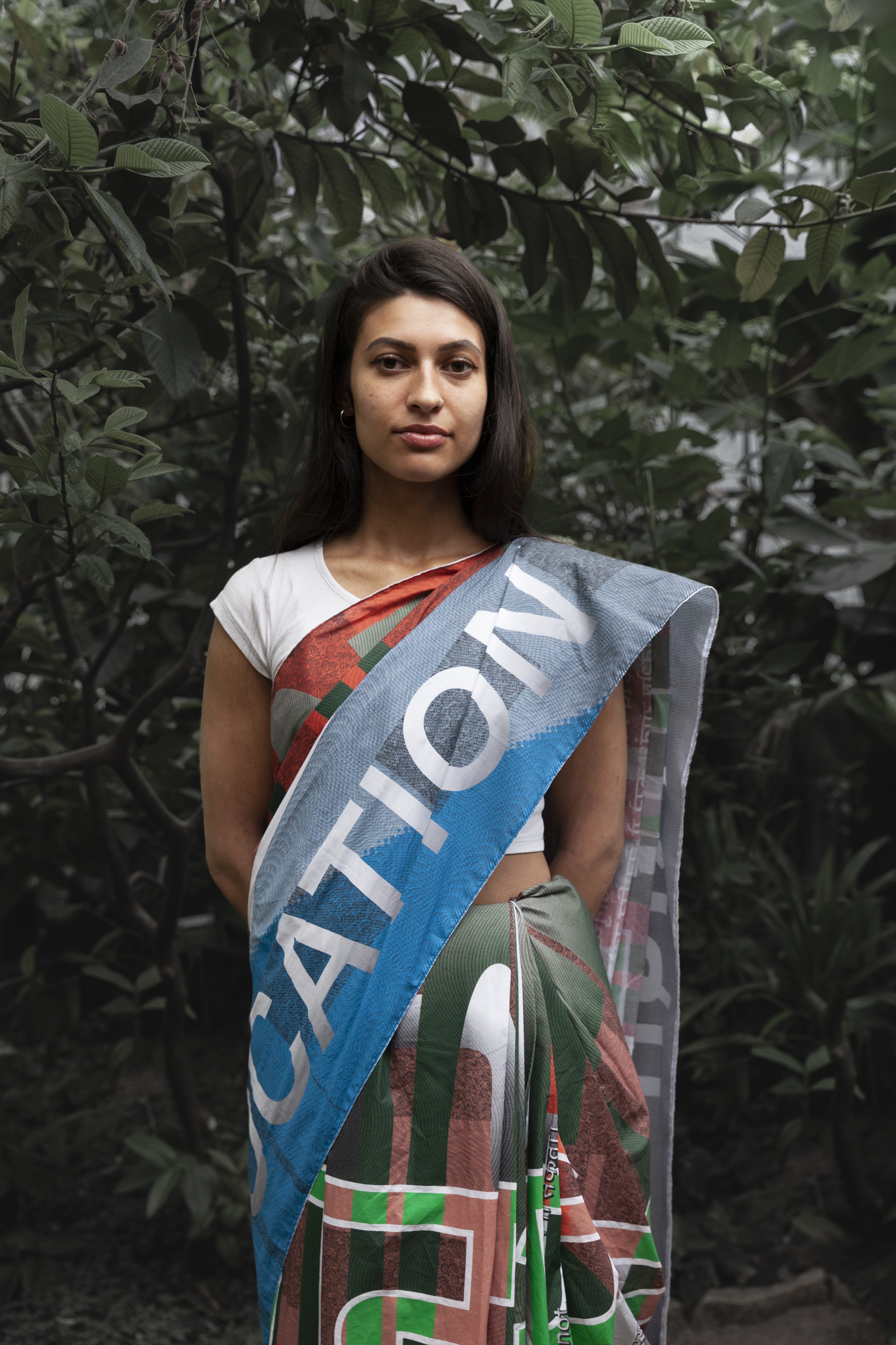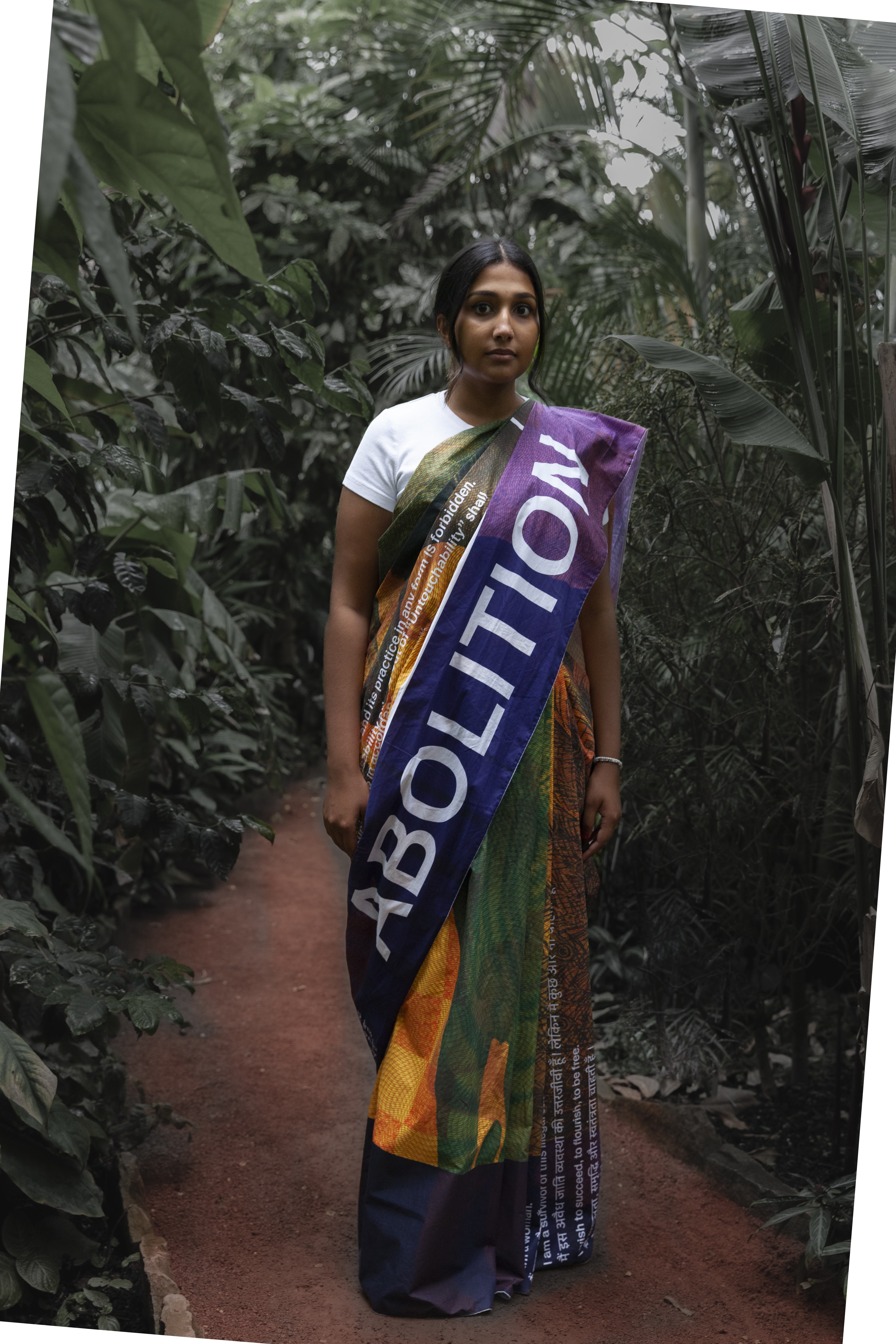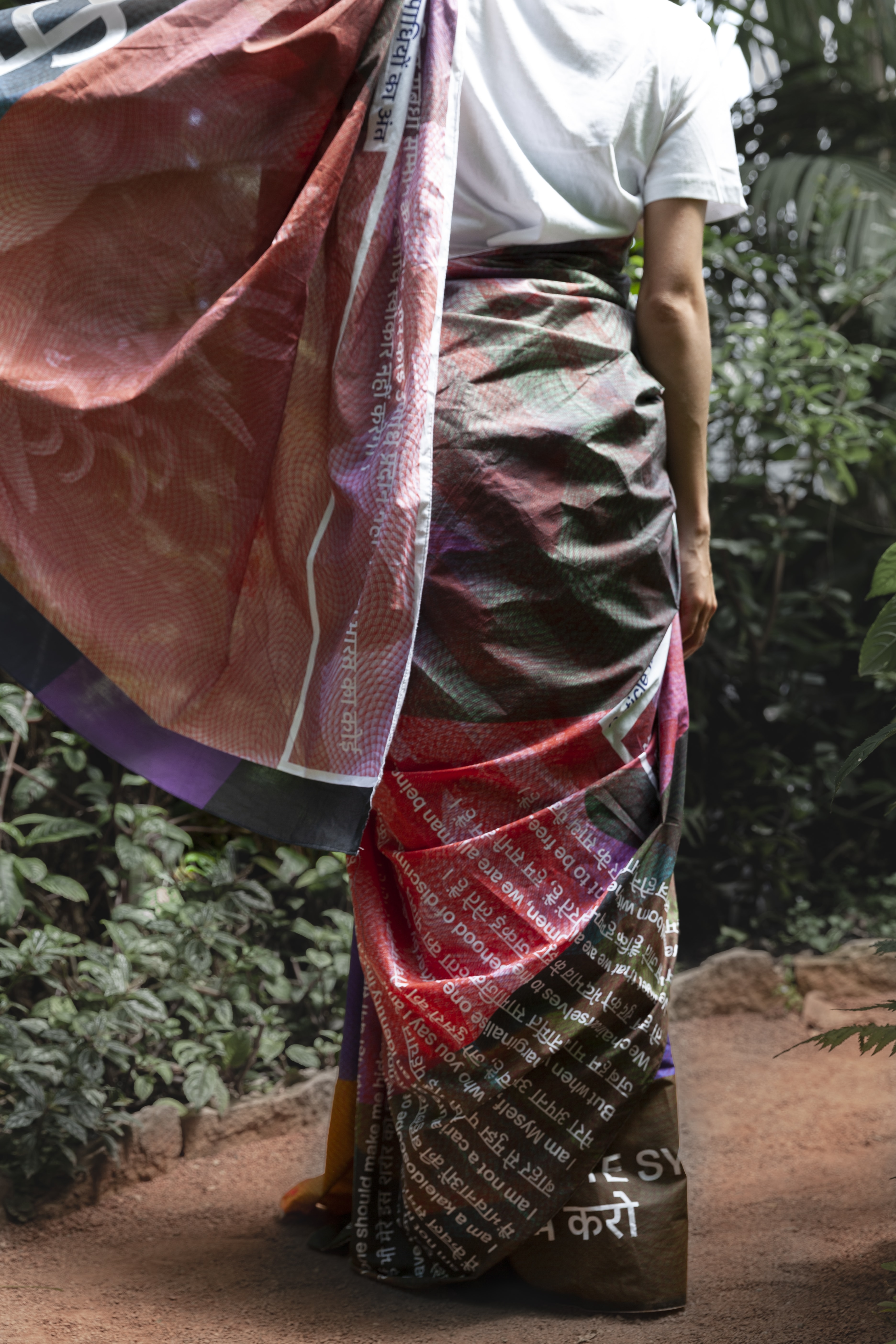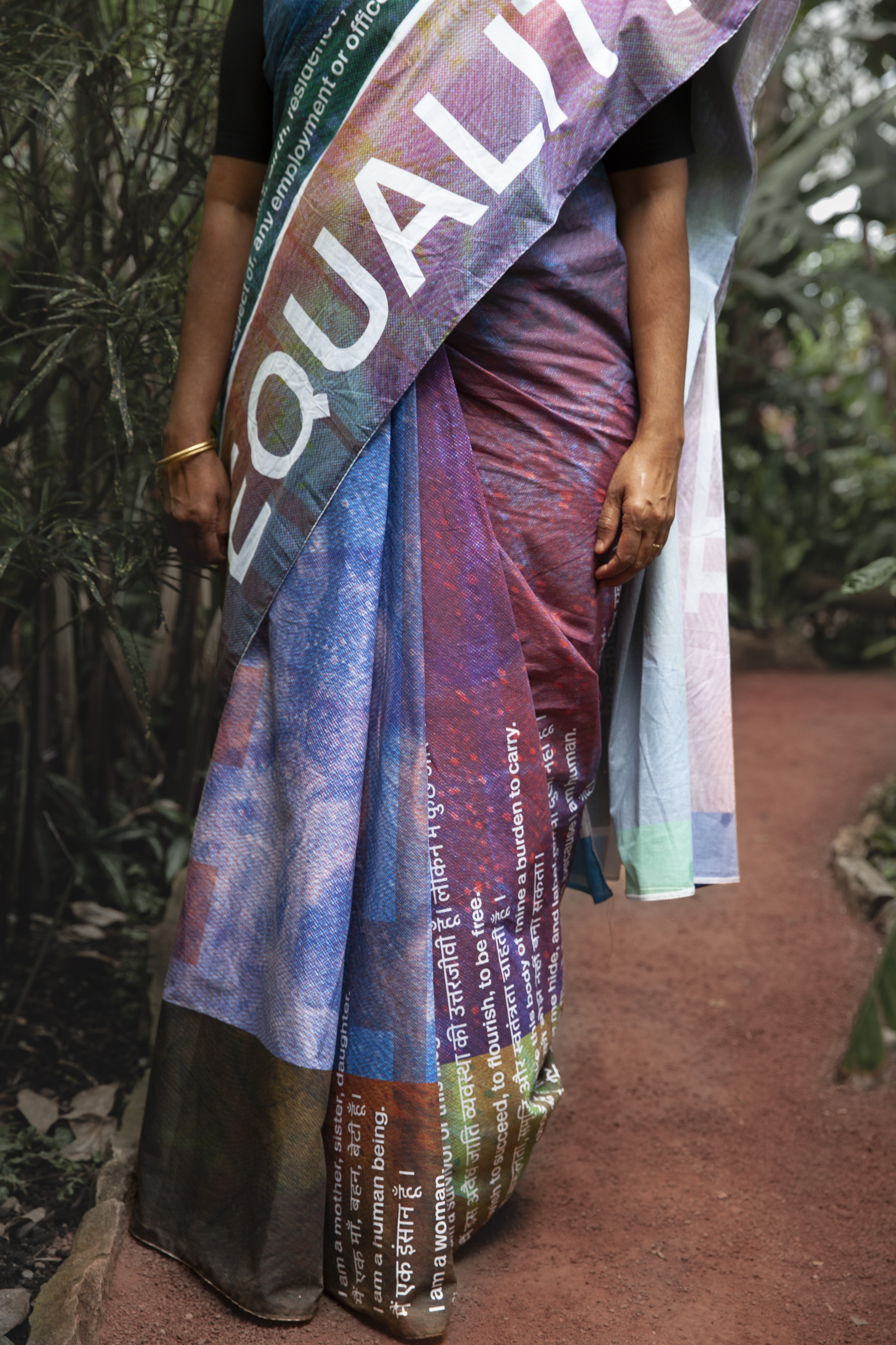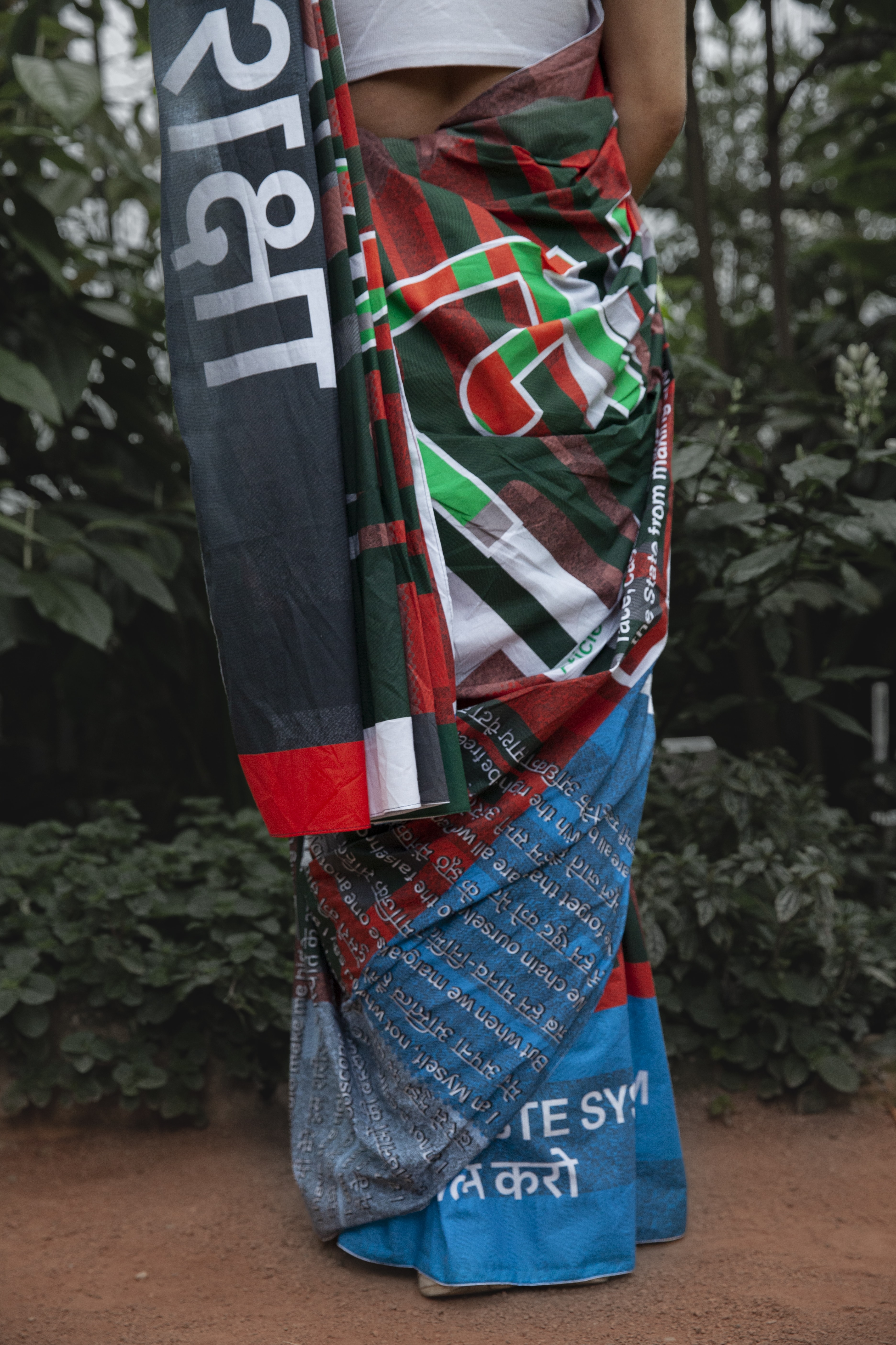 Although the caste system affects both men and women, as a designer I had to make a choice as to which of these to represent. Choosing the sari is my way of bringing the message to the people, and considering India is a male-dominated society in which gender bias is very present, empowering victims or survivors of the caste system and empowering women at the same time seemed like the right way to tackle the problem, in which the patriarchy plays a major part. In such a multilayered society women are at this vulnerable crossover point of both categories that are gender and caste, and although they are considered untouchable are still victims of rape. So empowering them through this piece of cloth felt like the right direction.