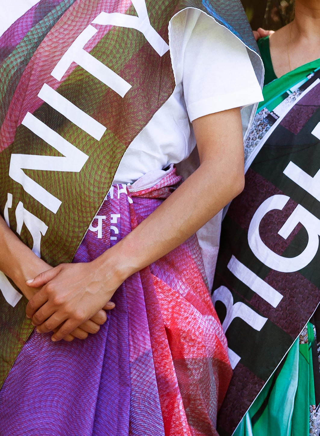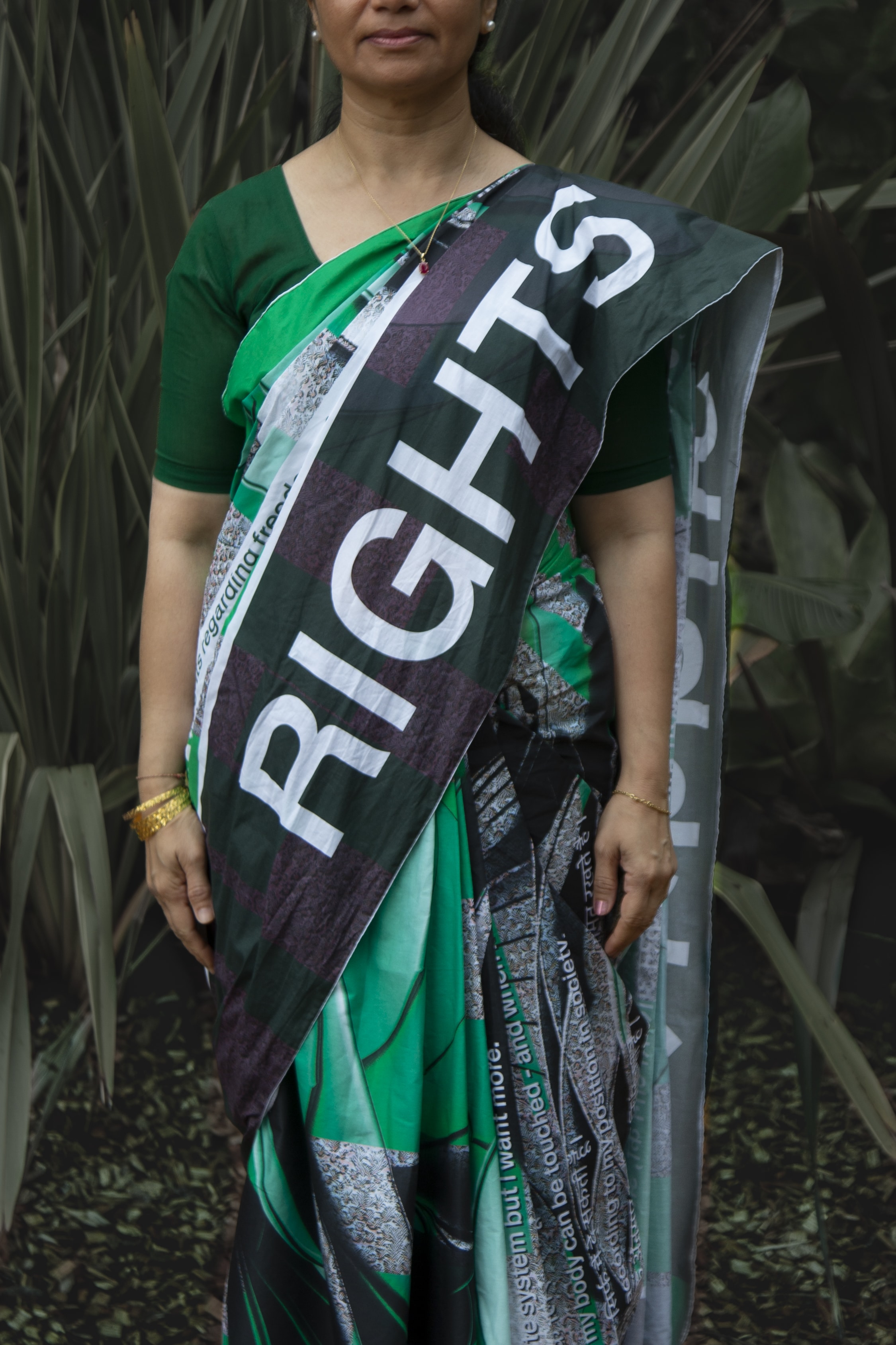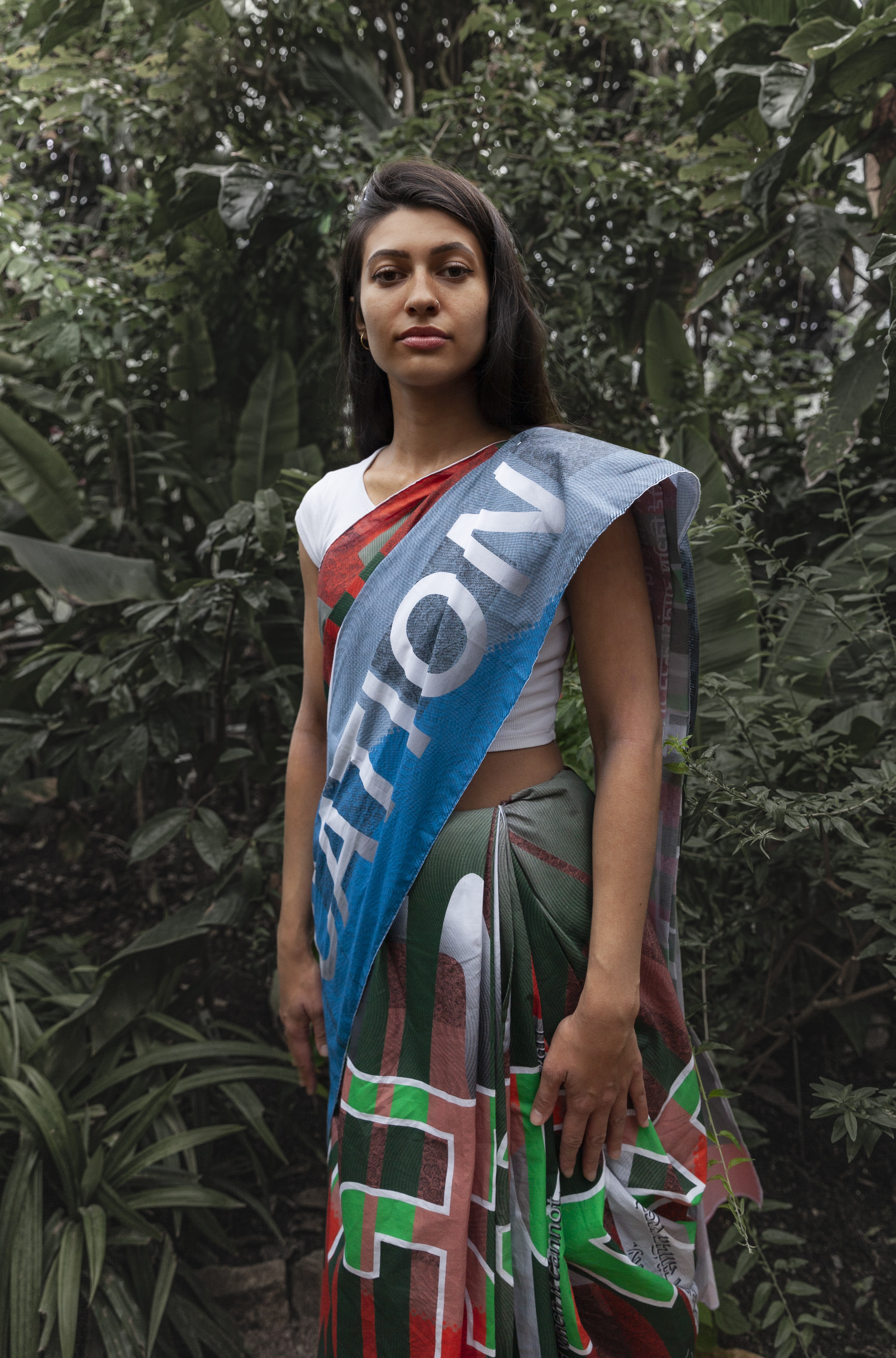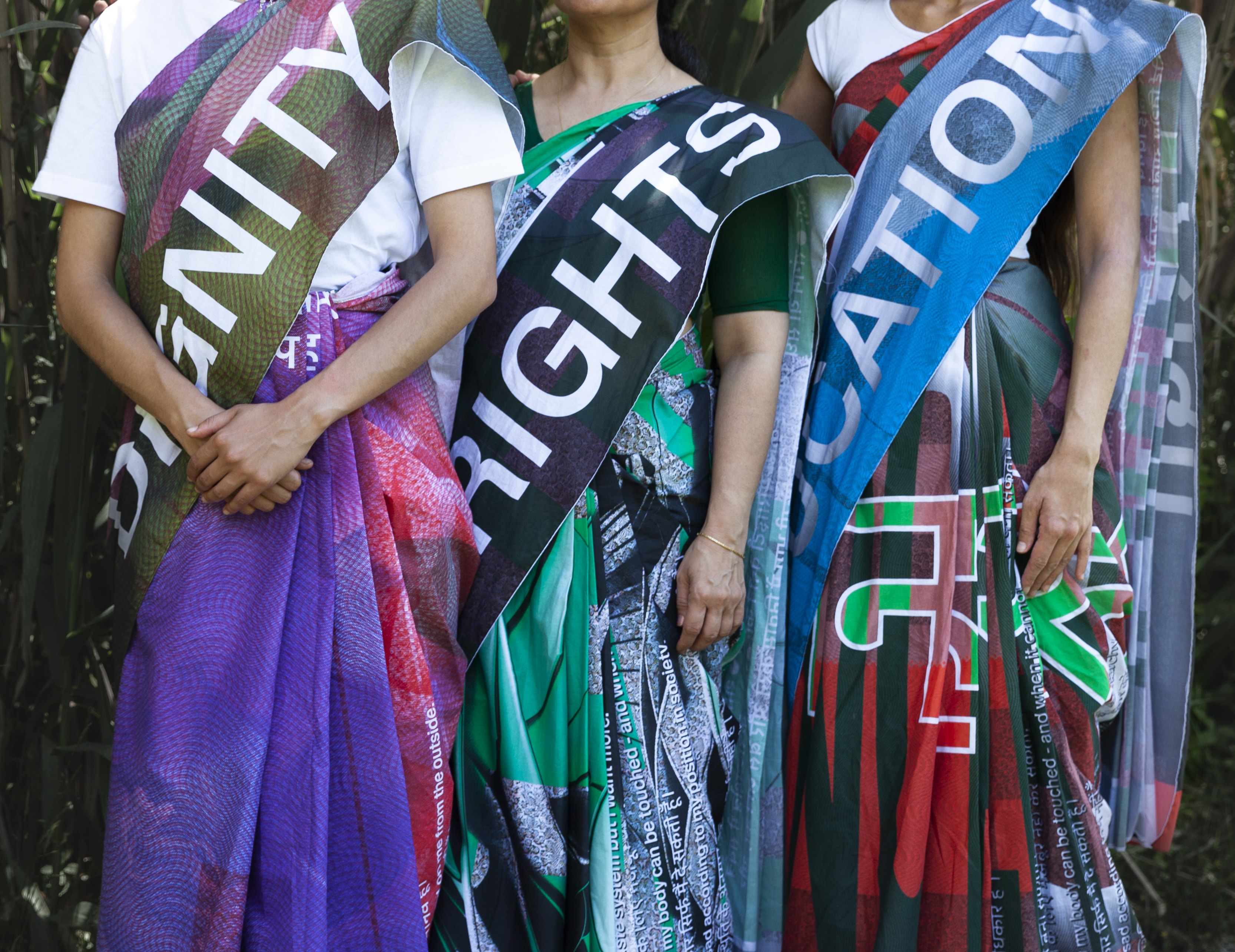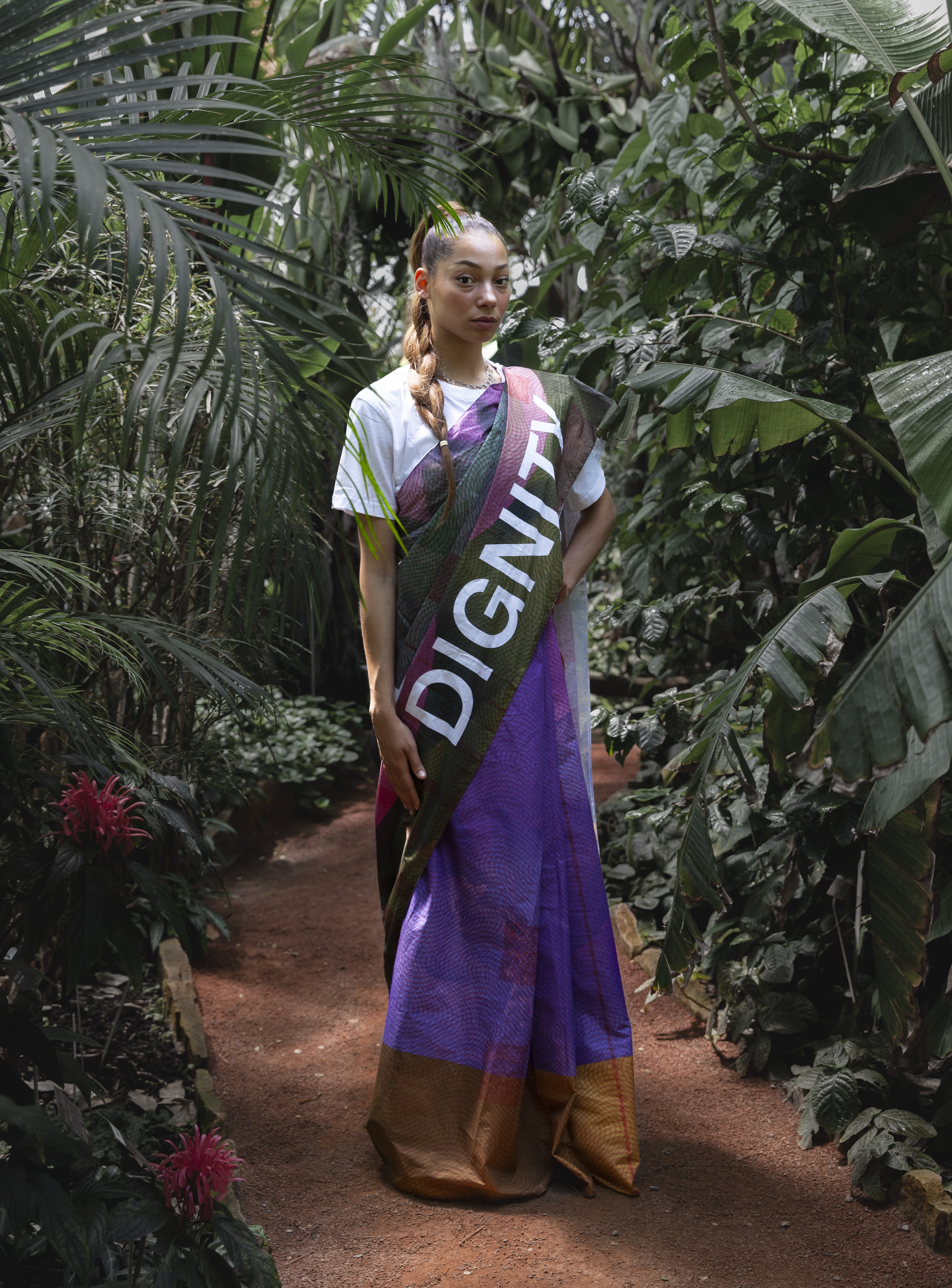 Although the caste system affects both men and women, as a designer I had to make a choice as to which of these to represent. Choosing the sari is my way of bringing the message to the people, and considering India is a male-dominated society in which gender bias is very present, empowering victims or survivors of the caste system and empowering women at the same time seemed like the right way to tackle the problem, in which the patriarchy plays a major part. In such a multilayered society women are at this vulnerable crossover point of both categories that are gender and caste, and although they are considered untouchable are still victims of rape. So empowering them through this piece of cloth felt like the right direction.