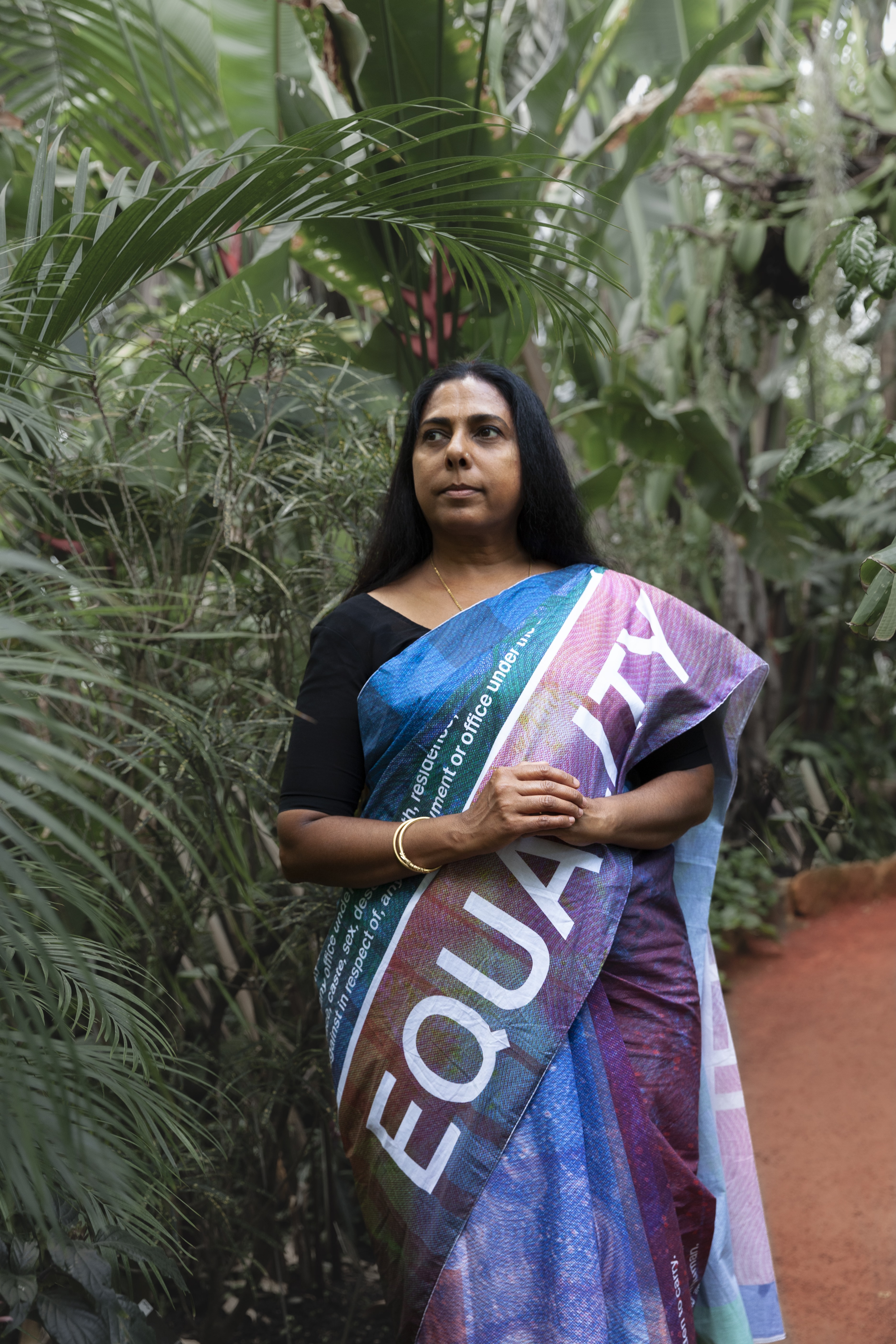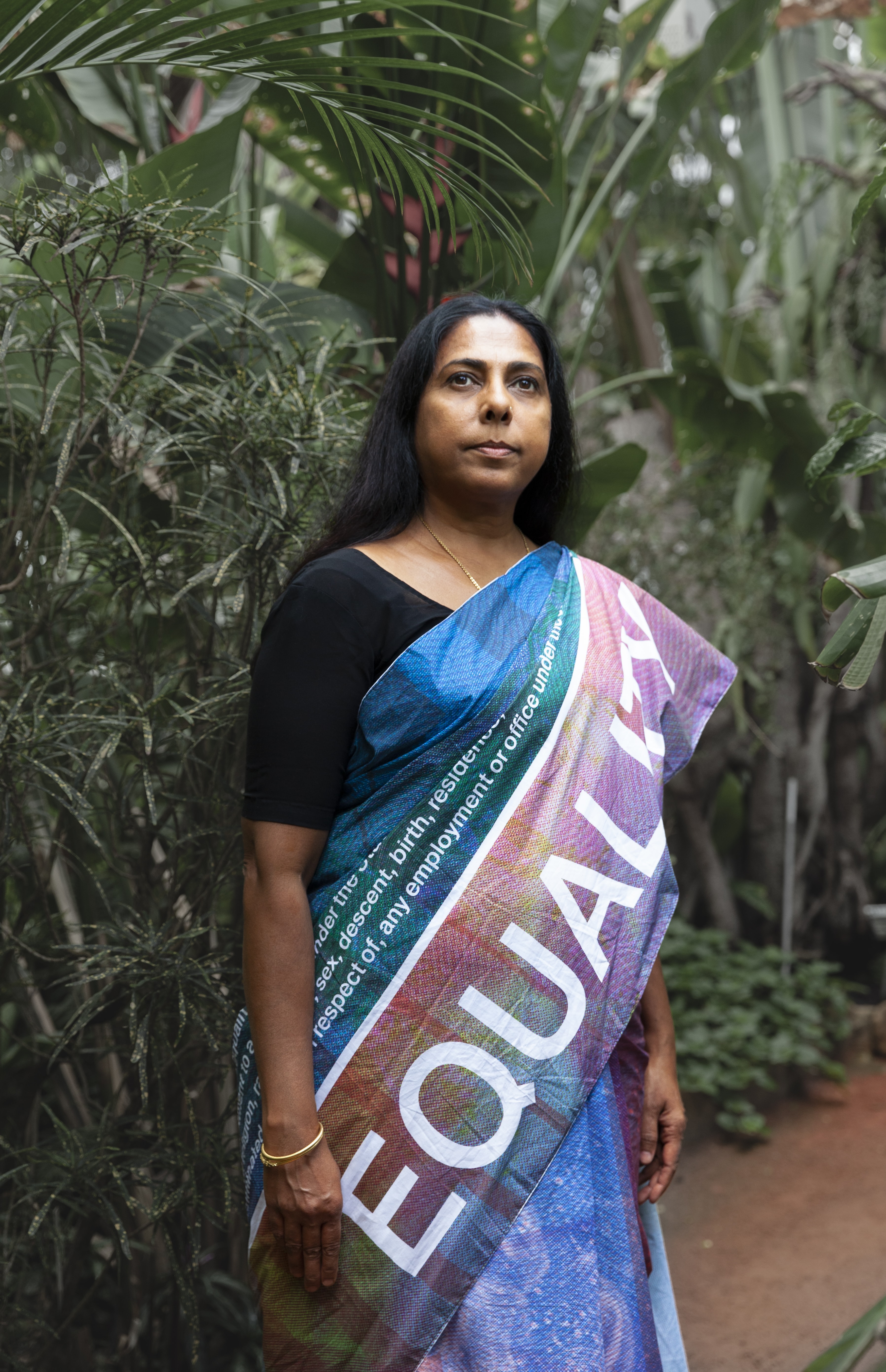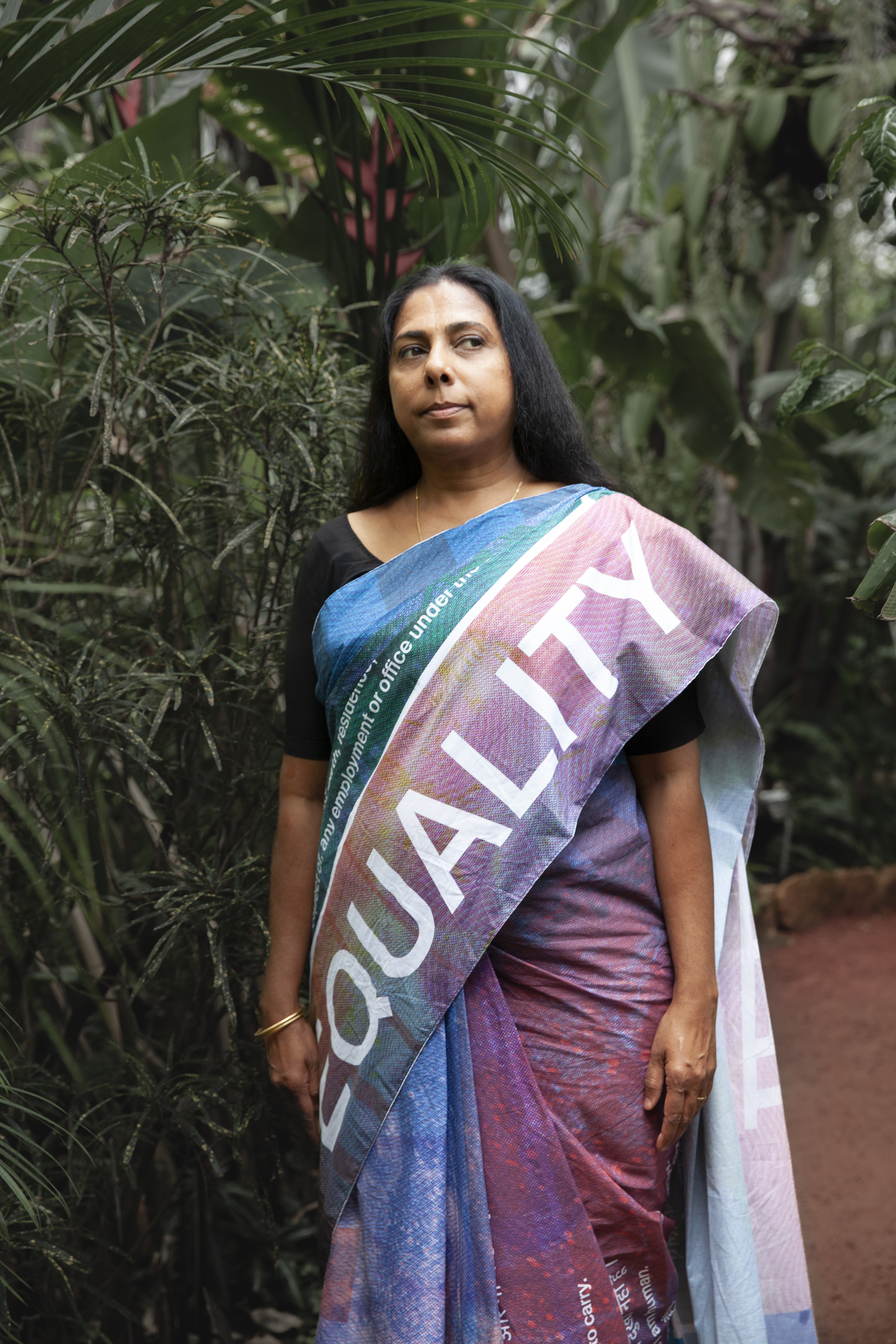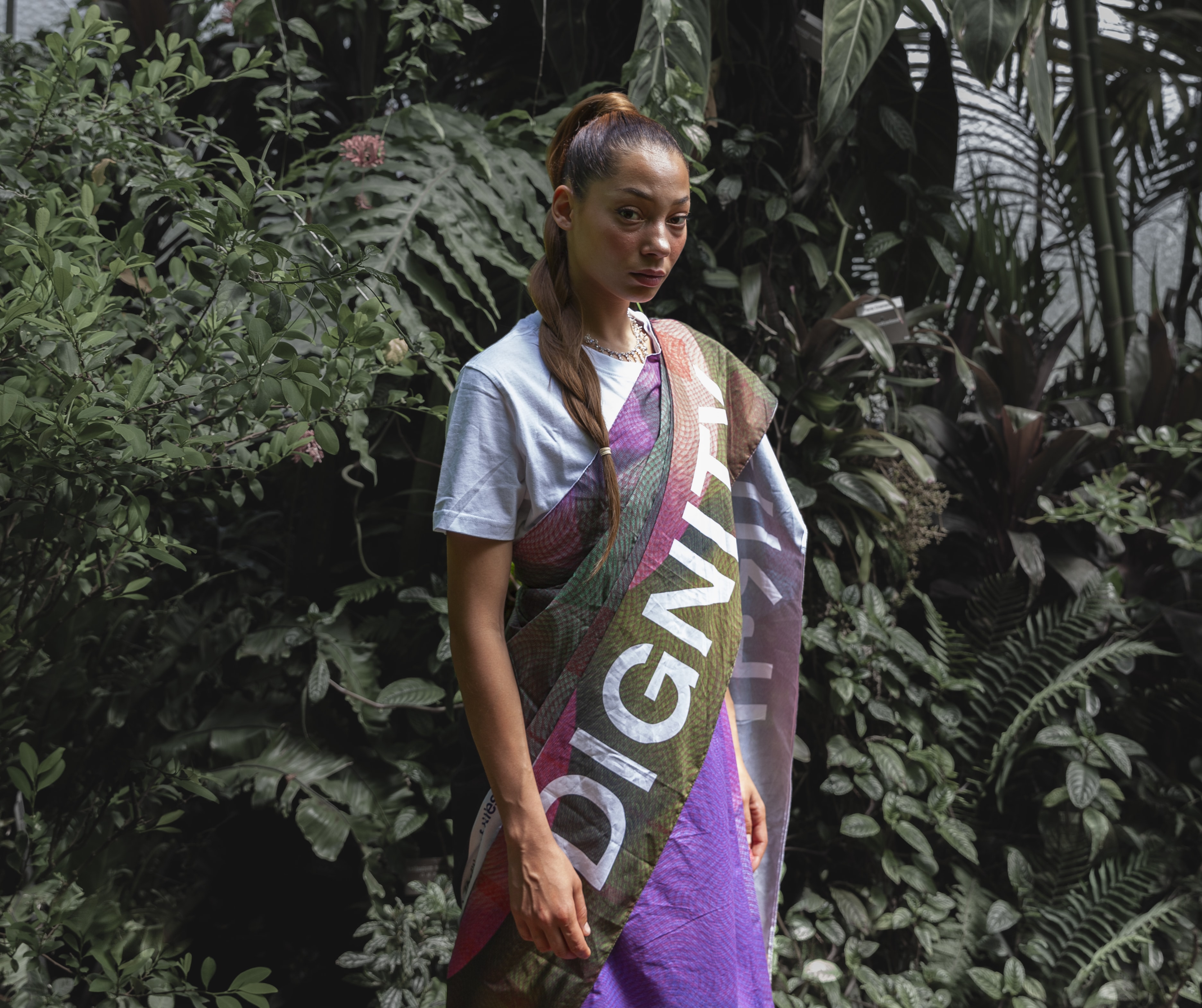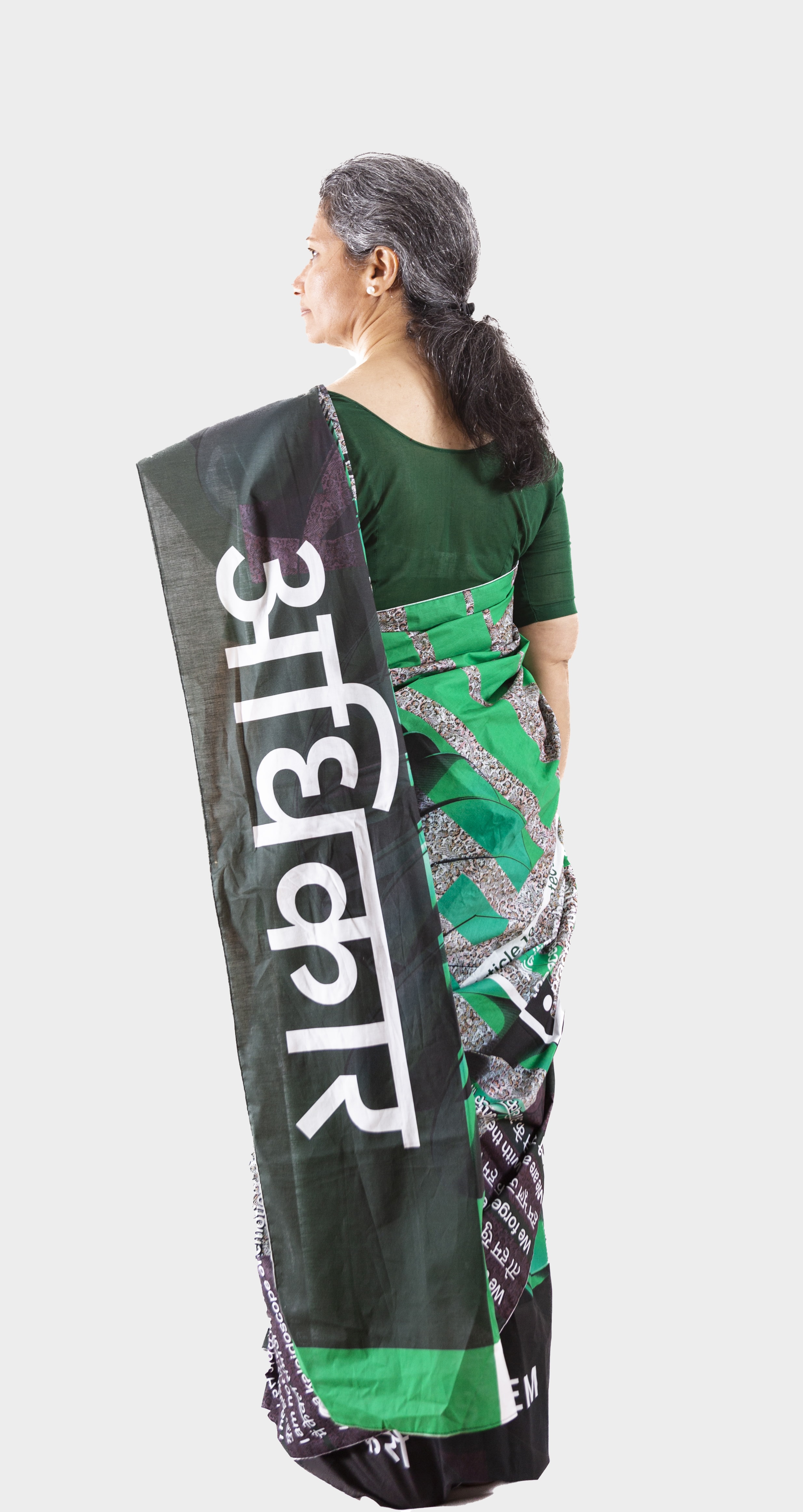 Although the caste system affects both men and women, as a designer I had to make a choice as to which of these to represent. Choosing the sari is my way of bringing the message to the people, and considering India is a male-dominated society in which gender bias is very present, empowering victims or survivors of the caste system and empowering women at the same time seemed like the right way to tackle the problem, in which the patriarchy plays a major part. In such a multilayered society women are at this vulnerable crossover point of both categories that are gender and caste, and although they are considered untouchable are still victims of rape. So empowering them through this piece of cloth felt like the right direction.