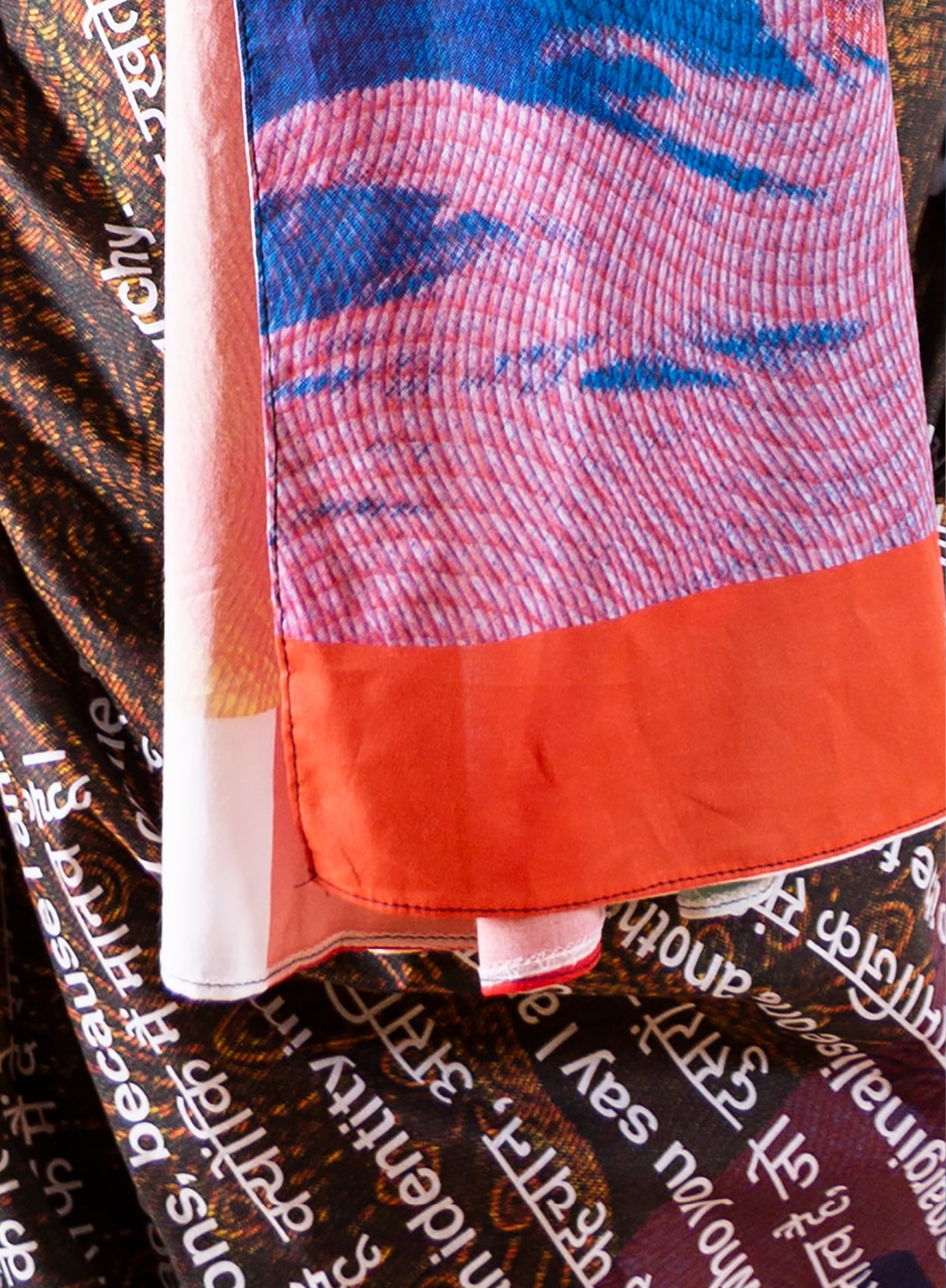 The creative process was very interesting, it demanded a form of journalism at first, and a lot of discussions with aunties, uncles, cousins, friends from India and also people who are well educated on the subject concerning Dalits. So the project started with a lot of information hence a very dense and multilayered design. The tools I used in the beginning were very tech-related, with machine learning and other forms of image processing and abstract 3D floral forms. The medium approach was inspired by poster designs. Quickly what popped out was a very European "plakatif or posterish" approach also with the contemporary typography choices. So that's when things became more clear in terms of narrative and what form the project would take. it was obvious that these sarees are being designed and made for people in India who live in this daily context of discrimination and not for the west. And wearing one of these sarees is an act of power, activism and courage against this illegal caste system. So from then onwards inspiration came from mythology, religions, culture and traditions of India put into a modern context whilst keeping an "old school"(with a special choice of colours) design look which was more adapted to the project and India's designs.