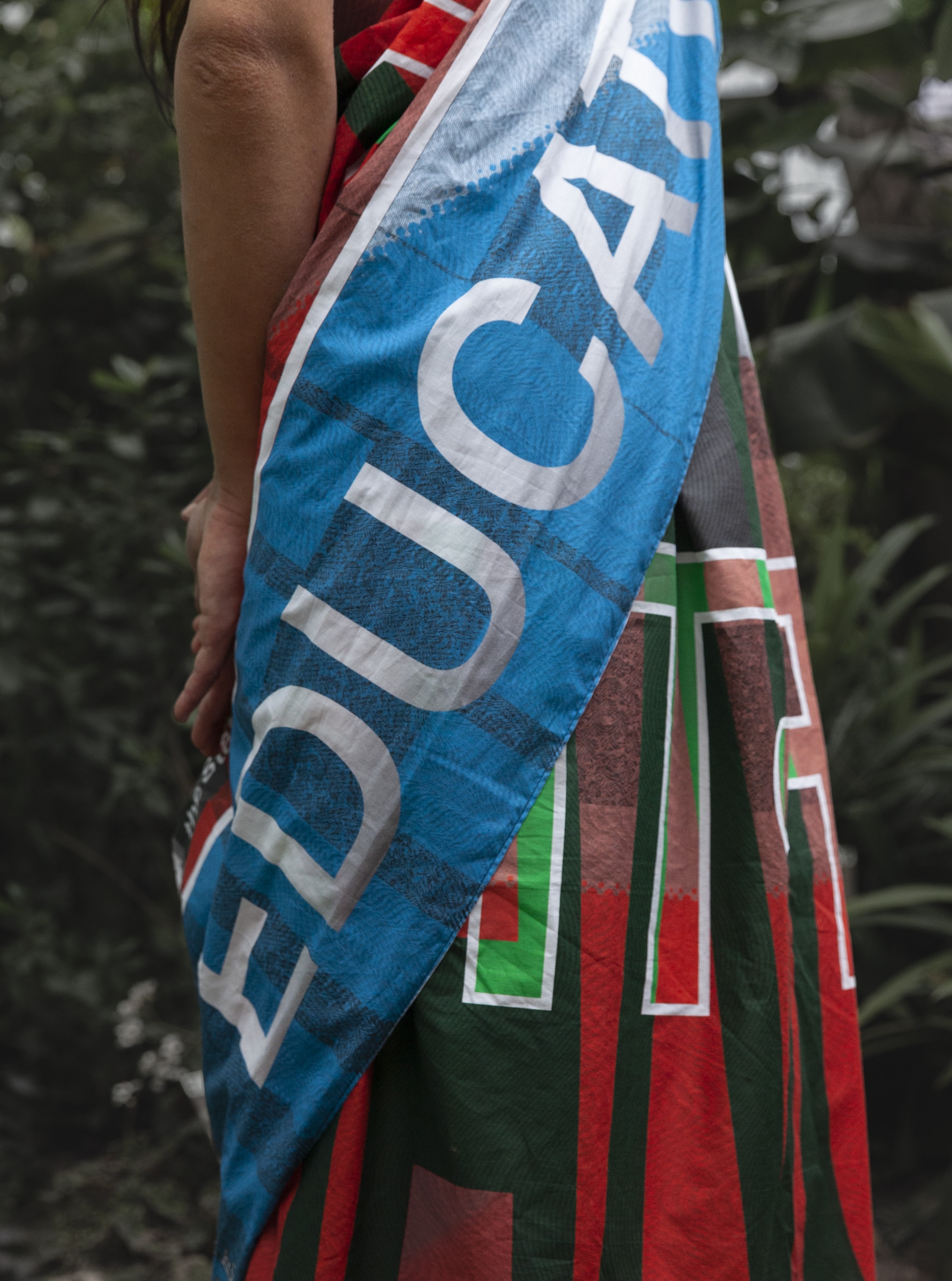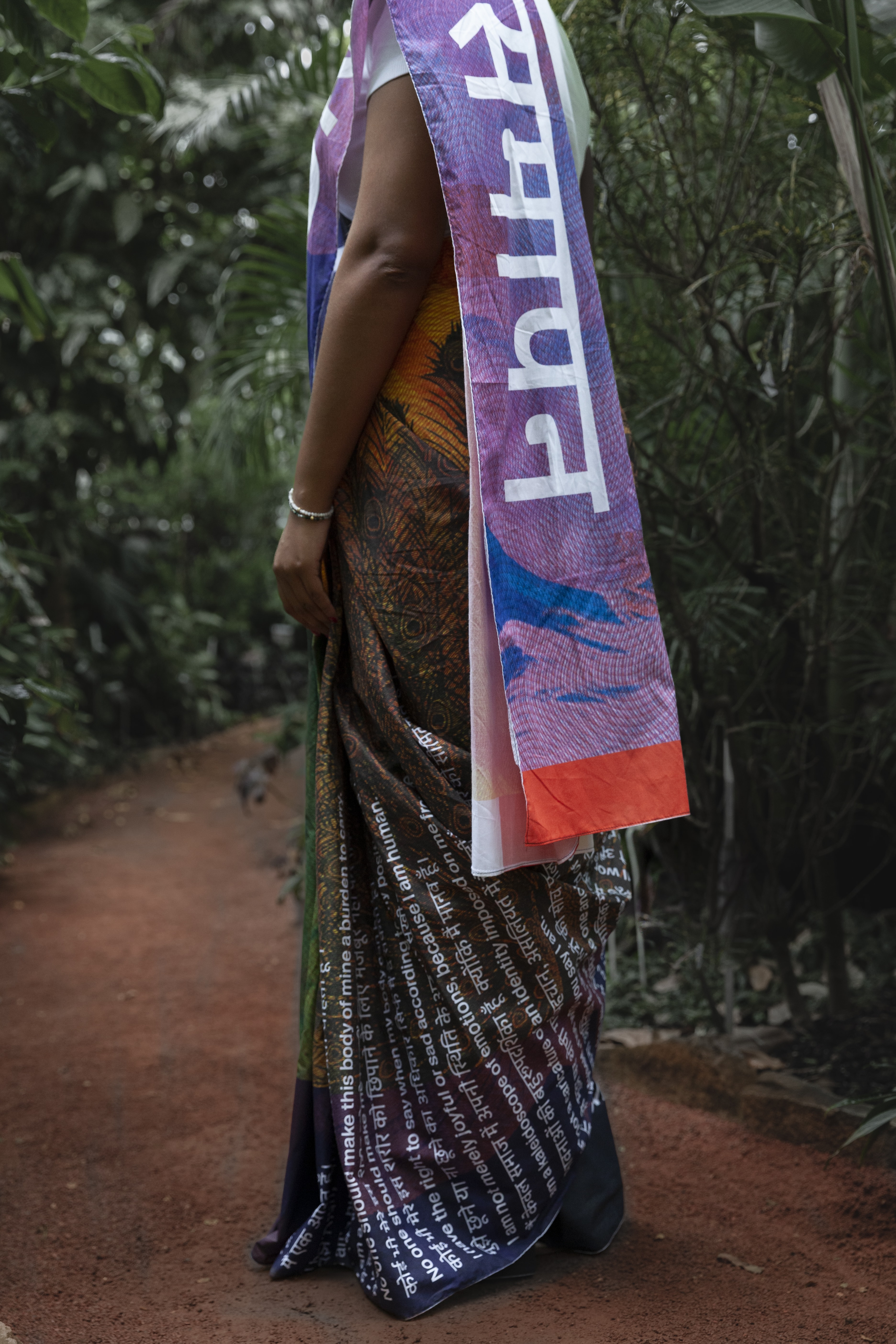 The goal is to have activists wear these saris to perpetuate this utopian ideal of equality and abolish the caste system which is legally already done but annihilate the caste system from the conditionings that are still very present in the minds of people following this tradition. It is a very dehumanizing attitude and my goal is to address the issue and raise awareness that these problems have a solution. This project proposes an activist solution which requires a proactive attitude towards the issue. No matter your caste, class or religion, if the issue concerns you or affects you directly or indirectly, the sarees are for you to wear!